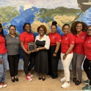 Members of Jeepers Serve stand with Southern Crescent CEO, Cynthia and Volunteer Coordinator Kiera after receiving the Chapman Champion AwardTerry Chapman’s son, Jonathan poses outside of the room named after his father.